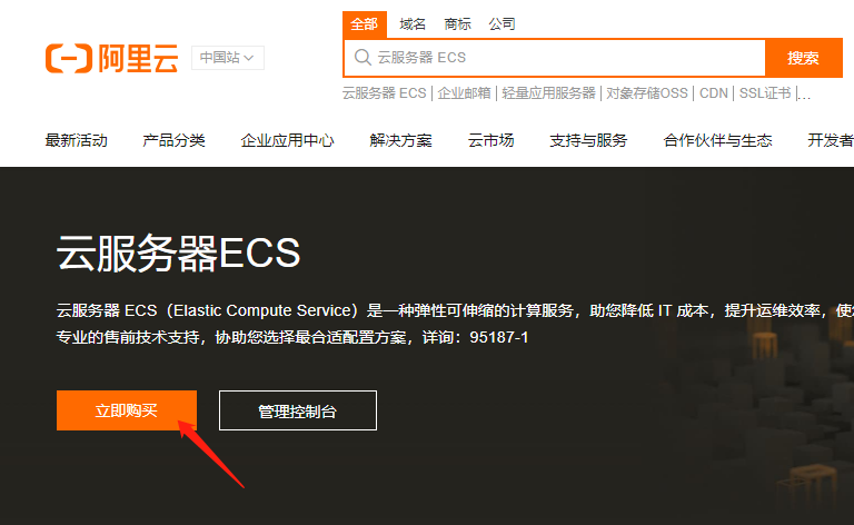 1、购买一台按量付费的Linux服务器,打开阿里云https://www.aliyun.com/,登录账号,充值100元,点击购买云服务器ECS。