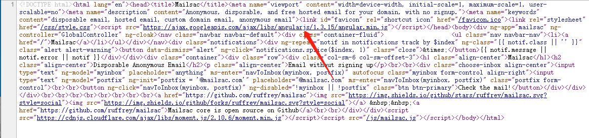查看网页源码后发现引用了谷歌CDN的angular,国内无法访问,所以需要更改链接。