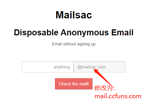 都替换为:(你可更换为你自己的域名,例如:ccfuns.com、mail.ccfuns.com、mailsac