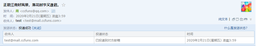 服务器启动后,重新访问“http://mail.ccfuns.com/”,如果正确显示则表示自启动成功,重新发送邮件进行测试。如果出现502错误,那么你还需要再次执行上面的4条命令,再重启测试。