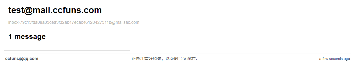刷新临时邮箱页面。(目前需要刷新页面才能看到新邮件,而官网是可以自动刷新的,考虑到仅是做部署测试,并不打算深究和解决这个问题,毕竟现在已经开始听到鸡叫了。“I want to sleep!”)