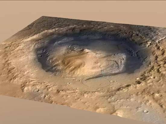 图2:夏普山位于盖尔陨石坑的中心,好奇号探测器目前正在探索这个区域。